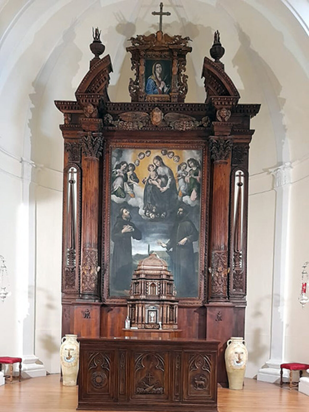 Sul finire egli anni 1970 si eseguirono altri lavori di miglioria, ristrutturando l’interno della Chiesa, compreso il Sancta Sanctorum, con pitture nell’abside dell’artista C. Colucci, arredandolo di un “nuovo altare liturgico e il pavimento in marmo ‘montecitorio’. Come pure l’ex cappella del Crocefisso, dove venne collocato l’altare ligneo settecentesco con la pala raffigurante la “Madonna degli Angeli sormontata da una ‘Addolorata’ rinascimentale, restaurate dall’artista prof. Demetrio” (L Pera).