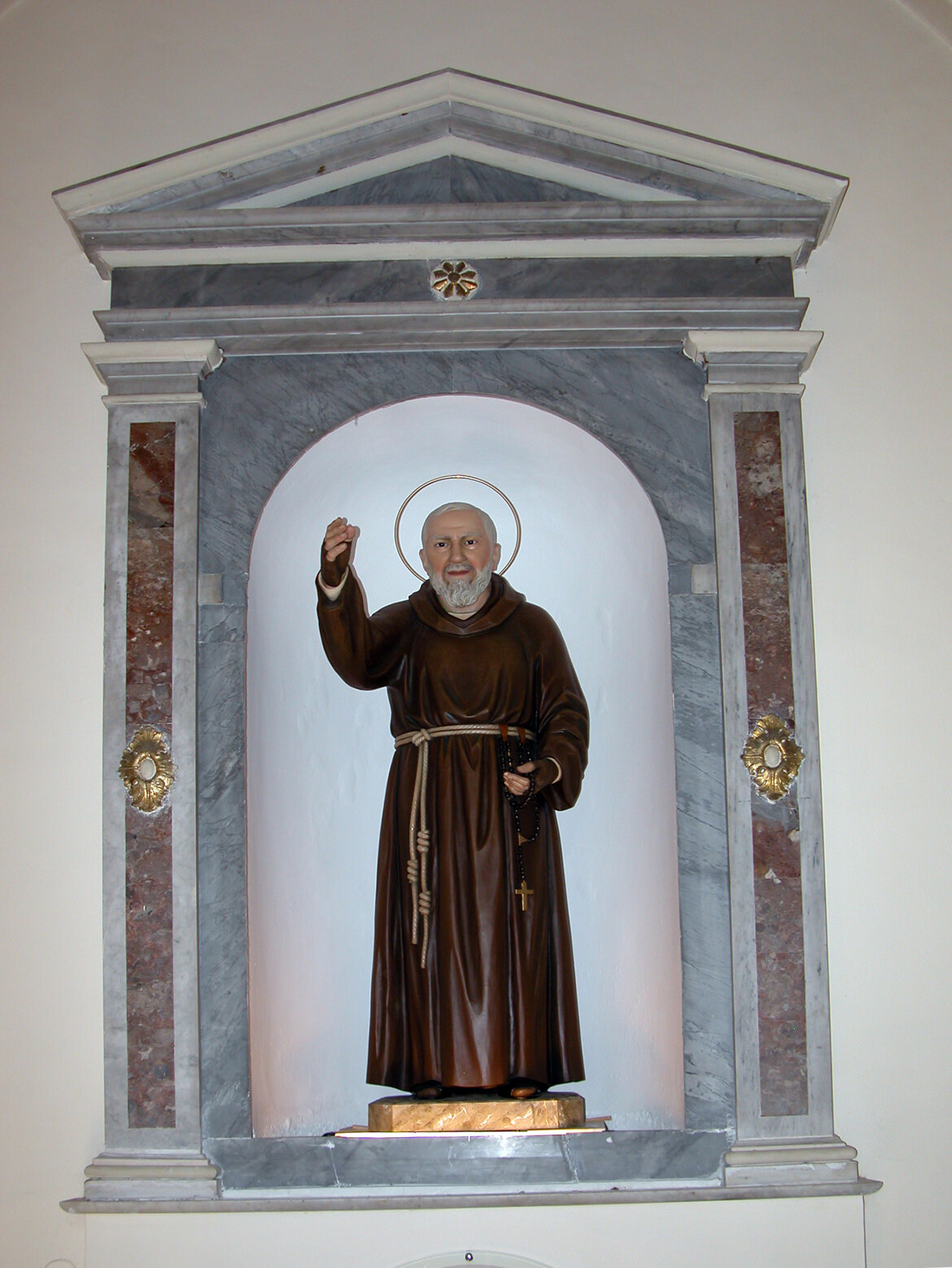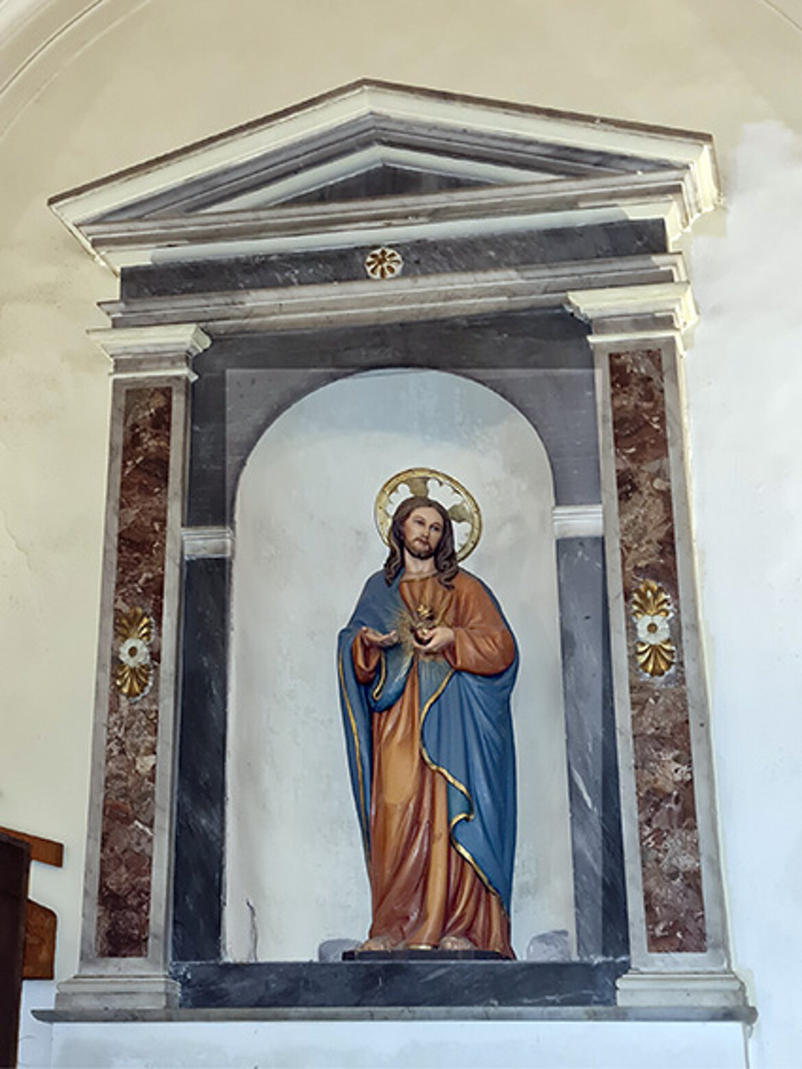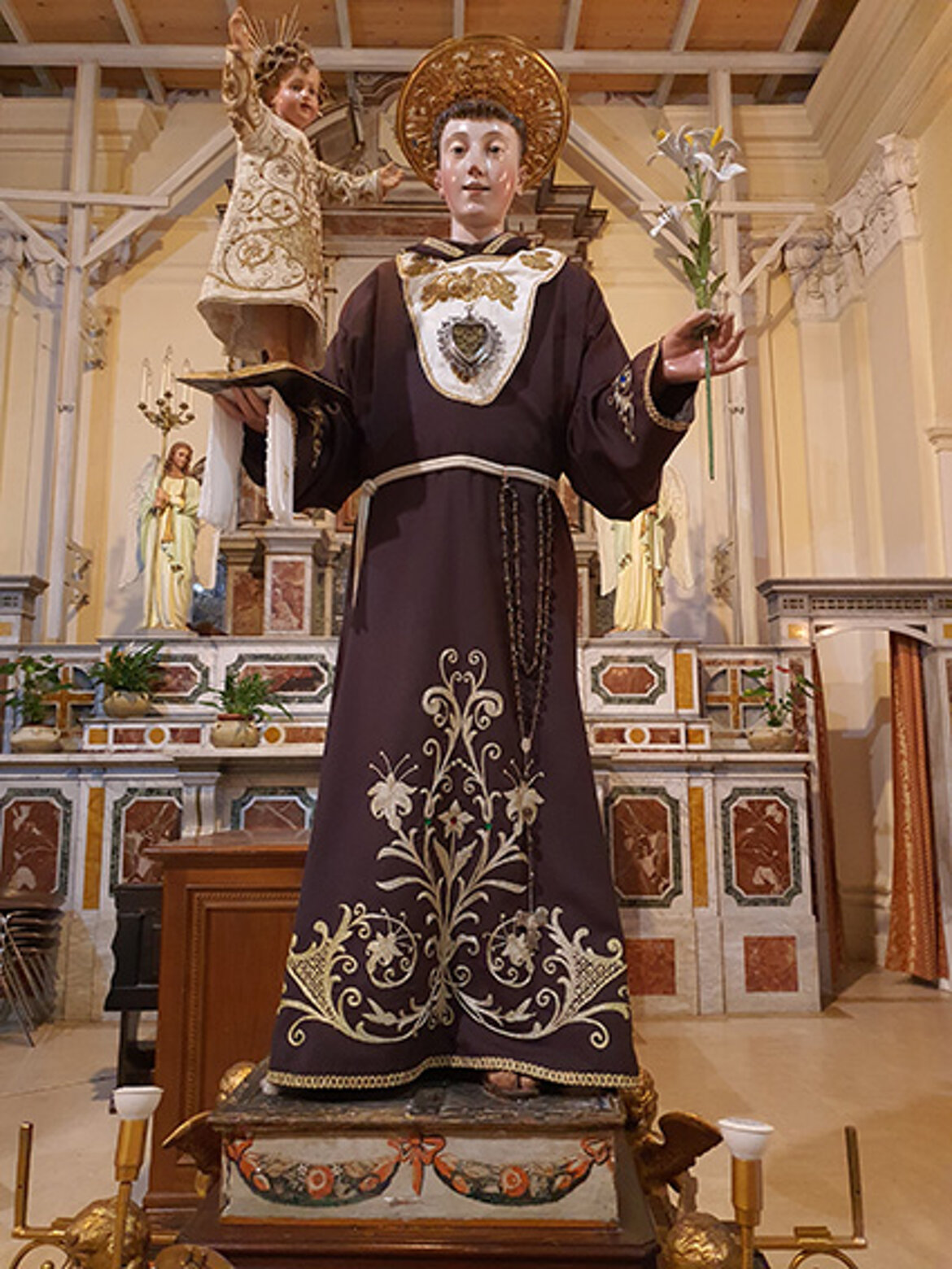 L’altare è in marmo policrono pregiato, sormontato dalla nicchia del Santo di Padova.