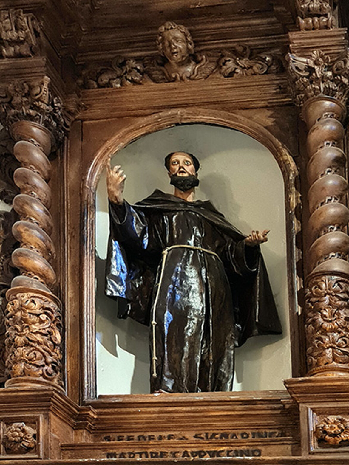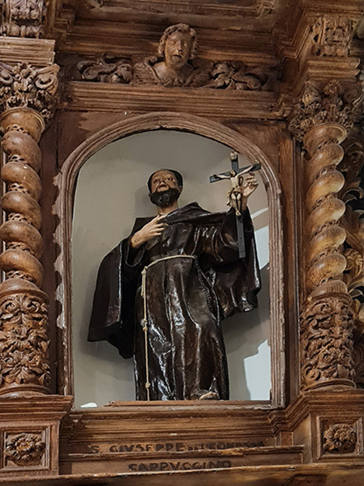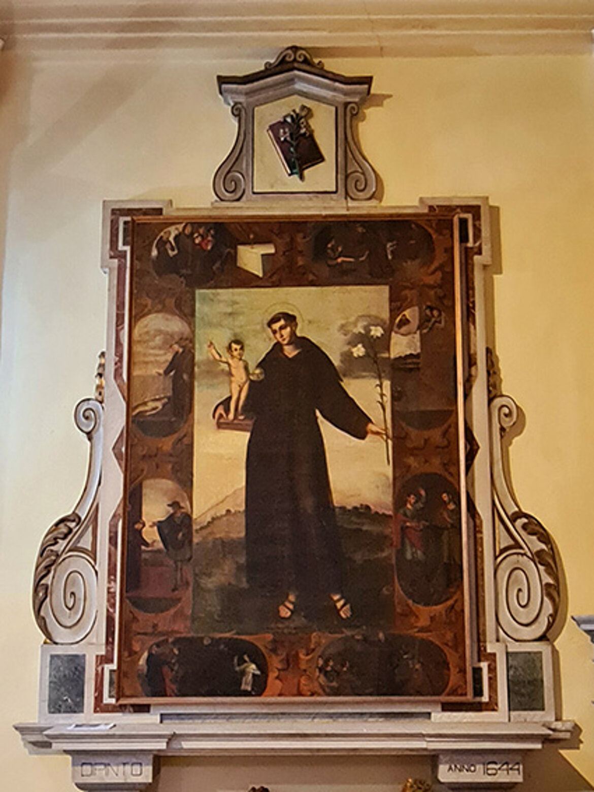 L’altare è in marmo policrono pregiato, sormontato dalla nicchia del Santo di Padova.