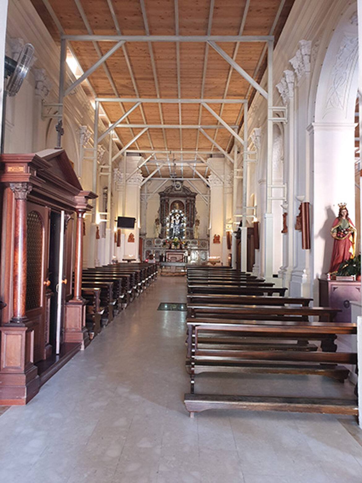 Assai interessante il plico documentale riguardo la chiesa e la sua evoluzione, dotandola di opere d’arte, tra i quali il “Quadro divino” opera dell’artista Giacomo Stefanoni, su commissione di Gregorio De Fazio (1644); la “Statua di S. Antonio di Padova” di scuola napoletana, commissionata nel 1685 dal ven. p. Antonio da Olivadi, allora Guardiano; l’affresco dell’intervento miracoloso di S. Antonio, a devozione di Lupo D’Ippolito, Patrizio e Sindaco della Città, a beneficio degli equipaggi di due navigli in balia delle onde tumultuose del golfo di Sant’Eufemia. Grazie, soprattutto, alla generosa carità dei devoti, la chiesa, inizialmente ad una navata, s’impone per il sontuoso Altare Maggiore, realizzato in legno intagliato e intarsiato nel 1742 da fra Ludovico da Pernocari e fra Francesco da Chiaravalle, essendo Guardiano il padre Giambattista da Nicastro. Bellissime le nicchie ospitanti, a sinistra san Fedele da Sigmaringa e, a destra, san Giuseppe da Copertino, elevati agli onori degli altari, rispettivamente, da Papa Benedetto XIII nel 1729 e da Papa Clemente XII nel 1737.