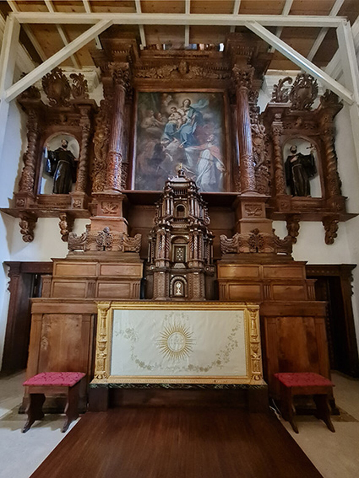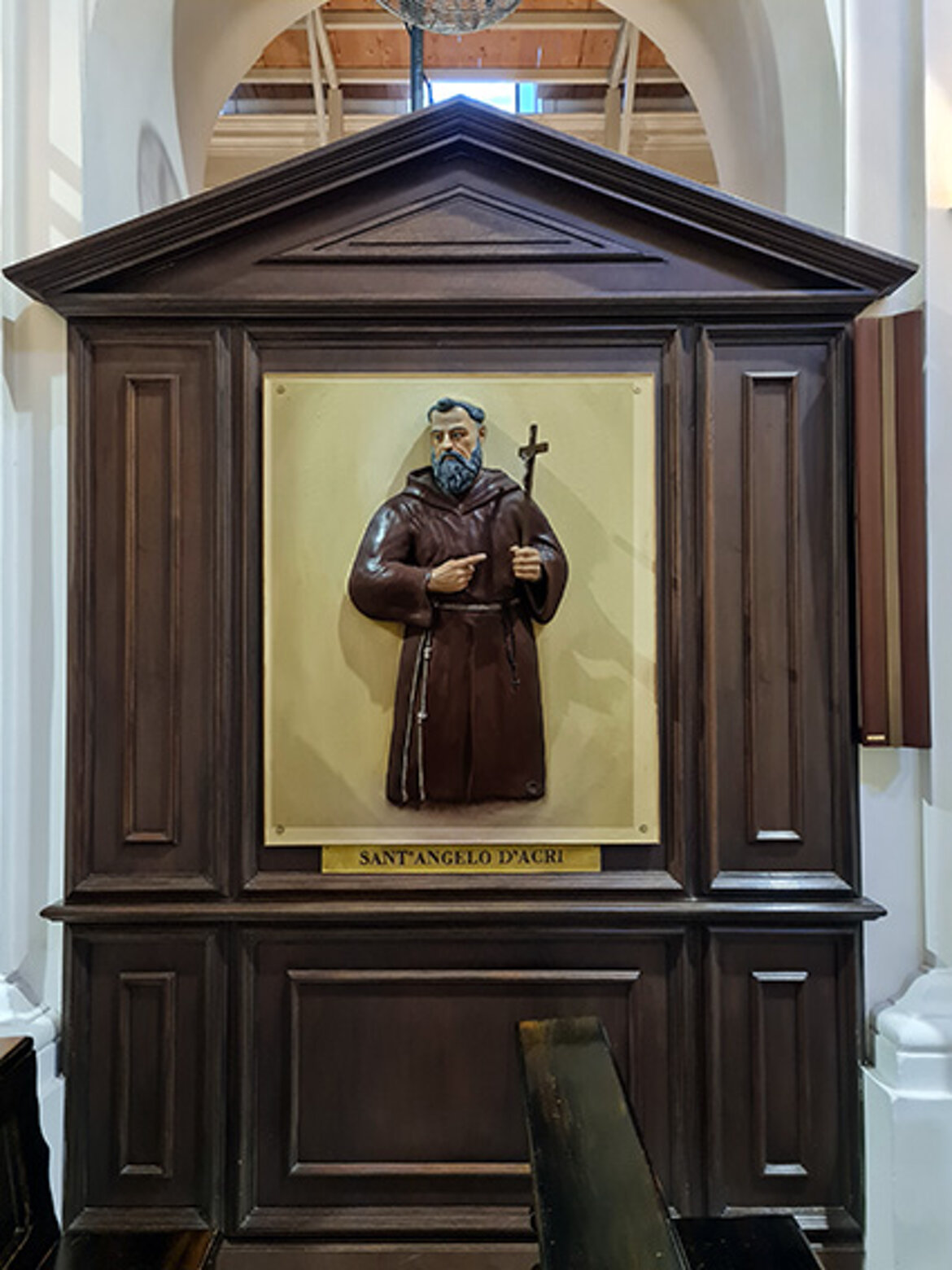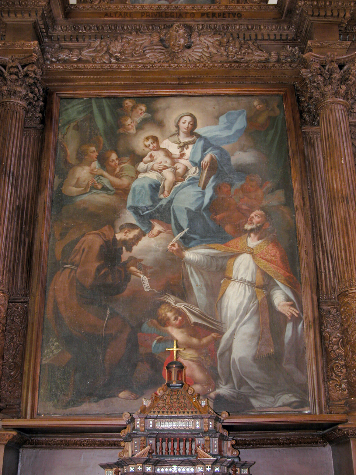 La magnifica pala raffigurante S. Maria degli Angeli con ai lati il Patriarca san Francesco e Papa Onorio III, venne eseguita da p. Fedele da San Biagio, essendo Guardiano p. Giacinto da Zangarona.